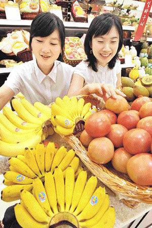 6日,在首尔中区忠武路新世界百货商店总店举行的“能够战胜热带夜的维他命水果汇展”上,顾客们正在挑选水果。百货商店方面介绍说,西红柿、猕猴桃、香蕉等能够给酷热下疲乏的身体补充能量,同时有助于改善睡眠。