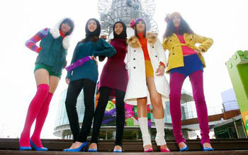 28日,Benetton韩国为纪念意大利服装品牌Benetton创建40周年,在首尔中区会岘洞南山的N首尔塔前举行了“2006秋冬服装展”。图为,服装模特身着今年秋冬将流行的Benetton服装,摆出各种姿势。
