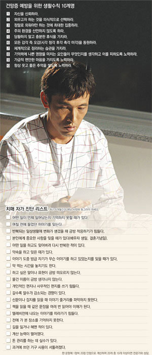 讲述一位患上阿兹海默症的30多岁年轻男子的家庭爱的KBS电视剧《透明人崔长寿》和描写患上痴呆症的20多岁年轻女性的爱情故事的影片《我脑海中的橡皮擦》告诉我们痴呆症是一种非常危险的疾病。但像电视剧和电影一样,20岁、30岁的年轻人出现痴呆症状的可能性微乎其微。梨花女子大学木洞医院神经科教授崔璟奎说:“近来,不少20~40岁的人因为经常忘记事情,担心自己患上痴呆症而来院就诊。痴呆症在60岁以上人群中常见。20~40岁患的不是痴呆症,大多是健忘症。”痴呆症和健忘症有何区别?有没有减少健忘症的方法?
