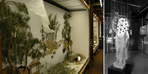 深受我国观众喜爱的是“寻找根源”馆。造型艺术作品《花的心》(崔正和)在户外搭建的20米高的巨大柱子上用针钉上花朵。经过该作品进入第一展厅,映入眼中的是光州双年展的大奖获奖作品迈克·周的《Bodhi Obfuscatus》。