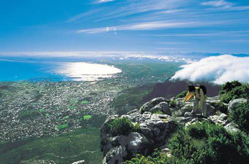 桌山相当于开普敦的屋顶。从地形上看,仿佛在桌湾背后默默护卫着开普敦。“桌山”的名字源于它的形状。仿佛被整齐地切断山腰一样,山顶非常平坦。也有人说像生日蛋糕。到山顶可以坐缆车。站在山顶欣赏海岸风景是一种享受。
