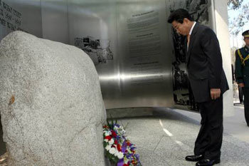 卢武铉向澳大利亚韩国战争纪念塔献花