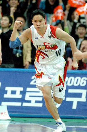 已经走到悬崖边的他仿佛换了一个人。首先是抹去自己的特点——“皇太子”形象。禹智元虽然是身高193厘米的前锋,但是在上个赛季之前的9个赛季中,平均篮板球还不到2.1个。因为他不喜欢身体对抗,是只喜欢在外围活动然后投球的“半场选手”。