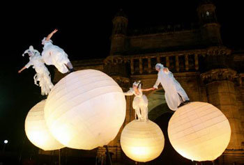 14日晚,澳大利亚舞蹈团“奇异果(Strange Fruit)”正在印度最大的经济城市孟买的标志性建筑“印度门”前展开梦幻般的表演。目前,纪念各种文化遗产的年例庆典正在孟买如火如荼地举行。