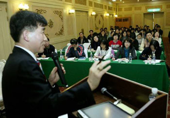 23日,经济五团体主办的“第7届面向教师的经济和文化体验”活动隆重举行。负责演讲的经营研究所所长孔柄淏正在进行讲课。本次活动将持续到26日。