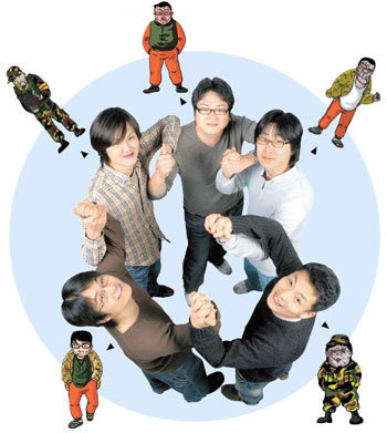 “欢迎光临艺人地狱。”桂园造型艺术大学97级同届毕业生戴比尔(张锡祖)、赫军(郑志赫)、西德拉克(张东赫)、希克曼(闵尚植)、千组长(千尚敏,以上均音译),他们五人是Flash 动画制作组“五人游戏”(音译,www.5p.co.kr)的成员。他们以军队问题或父权制家庭制度为素材,用脏话等日常粗俗的语言发泄心中的郁闷。他们从2002年开始制作的这些作品被称为B级文化,现已扩散到韩国互联网文化中。到目前为止,制作400多篇Flash 动画所经历的过程与争议,直接暴露出互联网文化的问题所在。表现的自由、名誉损害、肖像权……最近他们以在军队训练所经历的经验为基础发行了名为《没能得到免除的人》的漫画书。这些人在工作室和东亚日报总社与记者见面,对B级文化的实质与真实性展开了自由讨论。