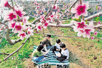 4日是农历立春,当天全国日间最高气温超过零上10度,令人尽情享受到春天的活力。在庆北庆山市押梁面新月里金云泰(音)的塑料大棚里开满了桃花,乡村的孩子们正在看书(左)。在国家最南端的全南海南郡松旨面地端(音)村附近海边麦田里,幼儿园的小朋友们在高兴地踩麦子。而中部地区今年首次出现了微弱的沙尘暴天气。