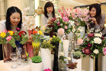 15日,首尔中区小公洞乐天百货商店总部作为迎接春季的市内装饰品推出各种色彩花瓶,吸引了女性顾客的关注。如果25日前购买花瓶就可以获得10%~20%的优惠。