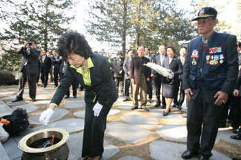 27日下午,前大国家党代表朴槿惠来到光州云岩洞全南光州殉国学生慰灵塔,焚香悼念殉国学生。