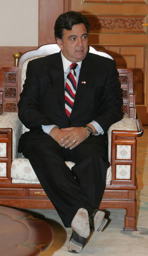 12日上午,到青瓦台会见卢武铉总统的美国新墨西哥州州长比尔·理查德森的皮鞋鞋底露出了补过底的痕迹,从而吸引了视线。这从侧面证明了刚刚访问完北韩之后直接于11日来到首尔的他是一位“徒步奔波”在各个现场之间的政治人士。