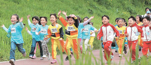 내가 1등 할 거야. 출발 신호가 떨어지자 어린이들이 힘차게 뛰어 나가고 있다. 이 어린이들은 서울 서초구가 어린이날을 앞두고 30일 양재동 서초문화예술공원에서 마련한 유아 튼튼 마라톤 대회 참가자. 관내 20여 개 어린이집에 다니는 유아 1000여 명이 참가해 양재천변 2km를 달렸다.