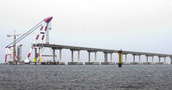连接仁川永宗岛和松岛国际城市的仁川大桥在迎来动工700天之际,展现了雄伟的英姿。仁川大桥将于2009年10月开通。