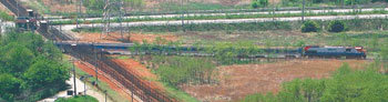 “时隔56年首次从文山开往开城的列车”。17日,车上乘坐150名南北人士的京义线试运行列车时隔55年零11个月,首次越过军事分界线,贯穿南北韩。京义线列车从南方都罗山站出发(左),经过南方关门(中)后,抵达目的地开城。右图是从北韩金刚山站出发,抵达南韩江原道固城郡猪津站的试运行列车。