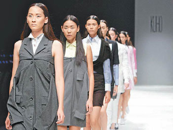 29日在首尔龙山区汉南洞凯悦酒店举行的女装品牌“KUHO”的2007年秋冬服装展上,模特们正在展示今秋的流行服饰。此次服装展的主题是以现代风格重新诠释20世纪60年代服装款式的“怀旧简约主义”。