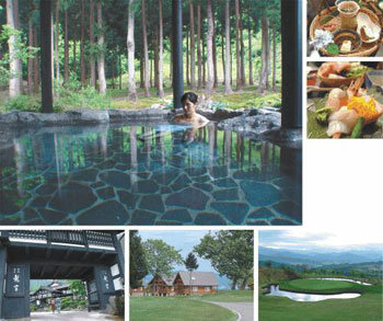 露天浴池位于杉树林旁边。反射在水面上的翠绿的树林和蓝天,还有清新的空气。感觉就好像自然的精气直接融入温泉水中渗入体内一样。在安静的中,唯一听到的是温泉水流动的小小的噪音而已。而就连这在龙言也会变成美妙的音乐。