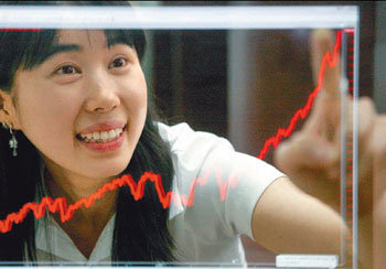 韩国股票市场正在飞速上涨。得益于个人投资者纷纷买进,18日的KOSPI指数比前一个交易日(15日)暴涨34.62点(1.95%),超过1800线后,证券市场周围一度出现了过热的争议。