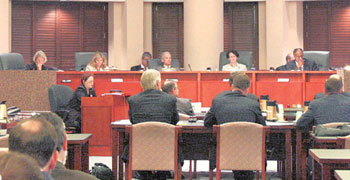 21日,韩美自由贸易协定(FTA)追加谈判在首尔钟路区都染洞外交通商部大楼拉开帷幕。韩国代表团团长金宗埙(右)、美国代表团团长卡特勒(左)出席了当天的谈判。根据美国的提议举行的本次谈判将对劳动、环境等7个领域进行讨论。