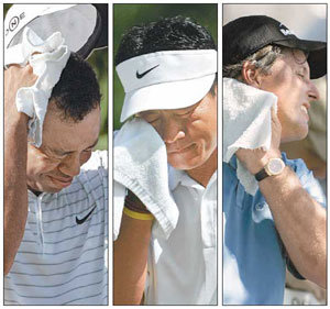 崔京柱(耐克高尔夫)和对赛季第一个冠军野心勃勃的泰格-伍兹(美国)以高于标准杆1杆,71杆的成绩并列23位。第一天,因为严格的规定和酷暑,只有12位选手得到低于标准杆分数。