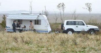 也许因为野营车,金某更喜欢上了野营生活。上个月13日在庆南参加完野营聚会后,他们夫妇就不约而同地决定参加11夜12日的野营。这是参观那些风景之地的一个愉快的旅行。旅行中有事情的人先回了家,有些忙碌的人会晚一点参与到这个旅行行列里面。