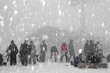 大雪(7日)的前一天(6日)上午,江原正善郡白云山的海源滑雪场上,人们正冒着大雪享受滑雪带来的乐趣。气象厅预计当天晚上以首尔、京畿、江原等中部地区为中心,将有最高8㎝的降雪。预计积雪量是:京畿北部和江原岭西地区3-8cm,首尔、京畿南部地区1-5cm。而夜晚的气温降到零下,将会引起7日早上的交通堵塞。