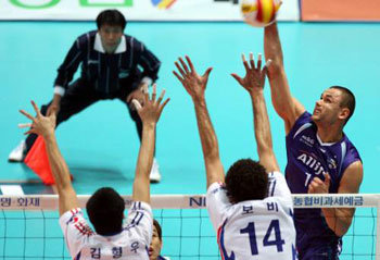 三星火灾通过安杰科的优异表现与拥有波比(23分)的大韩航空战成了3比1(25-23,25-23,21-25,25-19),以9胜1负排名第一,大韩航空7胜3负排名第二。