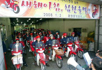 邮政事业本部所属光华文邮电局快递员们,2日召开了“新年快递员2008开幕仪式”。当日的仪式上快递员们纷纷表示了要提供更好服务的决心。