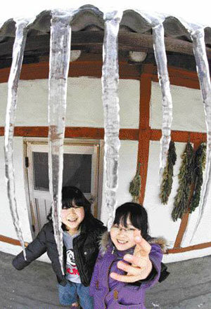 虽然天气寒冷,但是孩子们的表情却充满着温馨。入冬后首次被提醒谨防寒流的江原平昌郡上,15日孩子们正摘着屋檐下的冰凌而满天欢喜着。