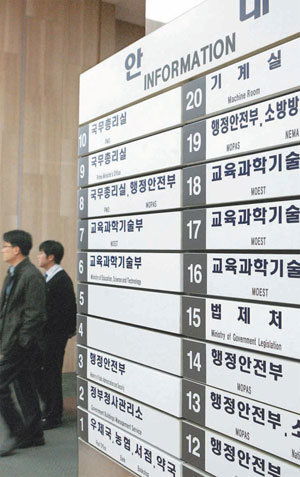 3日,根据政府组织法的修改,首尔钟路区政府中央大厦的1楼指示牌也被替换了。当天政府过天大厦内的计划财政部、国土海洋部、知识经济部、保健福利部、农林食品产业部等也焕然一新。