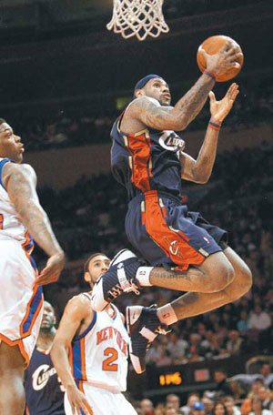 6日,在麦迪逊广场花园召开的和纽约尼克斯的美国职业篮球远征比赛中,詹姆斯以得分50、10个助攻、8个篮板Triple-double级活跃,取得了119:105的胜利。