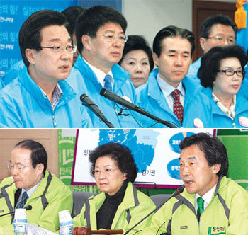 各党领导部在迎接总选前的最后一次周末主张“为变化的稳定论”和“一党独裁的牵制论”,号召给予支持。大国家党代表姜在涉于6日上午在首尔汝矣岛本社召开记者会强调大国家党过半数议席的必要性,提议统一民主党召开政策讨论会。(上)民主党代表孙鹤奎代表出席在首尔永灯蒲区唐山洞本社召开的选举对策委员会中强调:“要阻止一党独裁。”