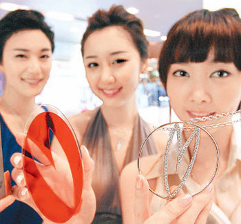 16日,位于首尔中区小公洞的乐天百货总店里,首饰名牌“Foxy Heart”展示了极具魅力的狐狸模样的、可爱的心型项链等贵重金属。