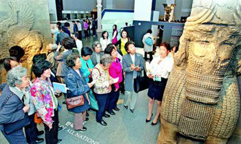 24日,为观看“黄金帝国波斯” (东亚日报、国家中央博物馆、伊朗国家博物馆•SBS共同举办),观众们聚集到了国家中央博物馆策划展览厅。在波斯阿契美尼斯王朝的首都Persepolis宫廷象征物“万国之门”面前,观众正听取博物馆职员的说明。当天已是开幕第三天,但是不顾是工作日的家庭和团体游客们的聚集,让人着实感受到了人们对波斯文明的关注。展览将开到8月31日。门票普通1万韩元,学生9000韩元,儿童8000韩元(5月5日之前优惠50%)。02-793-2080