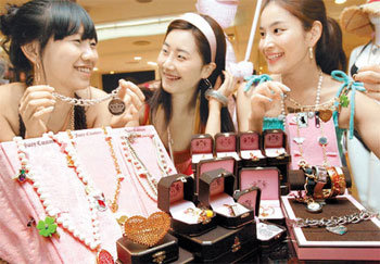 15日,首尔江南区狎欧亭现代百货店总店推出了符合夏天服装的饰物。在“橘滋”出来的制品最大特点是粗。价格是1~30万韩元。