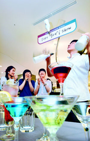 20日,现代百货总店一家男性饰品店—“巴黎屋”,以夏季宣传项目,向顾客展示了专业调酒师现场调制鸡尾酒的表演。