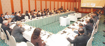 8日,在首尔中区一家酒店,韩国科技大学(KAIST)主办了“世界研究中心大学校长会议”。法国巴黎工大和澳大利亚昆士兰大学校长等,20个国家100余名研究中心大学的代表正在讨论国家间的交流问题。