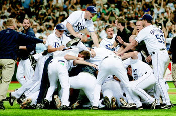 美国职业棒球美洲联赛东部地区的“最后一名” 坦帕湾队,战胜了去年的冠军波斯顿,创团以来第一次进入了世界系列赛。