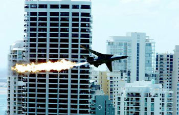 26日,将在澳大利亚黄金海岸冲浪者天堂举行的“Indy300”赛车活动召开之前,澳大利亚空军战斗机穿梭在冲浪者天堂周围的森林,举行祝贺飞行。
