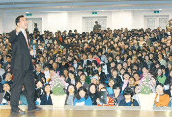 15日,梨花女子大学召开了高丽大学、西江大学、成均馆大学、延世大学、梨花女子大学、中央大学、汉阳大学等4所私立大学的招生说明会,学生家长正在注意倾听招生办处长的讲话。