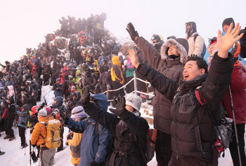 一直以来,智异山就被视作是传输希望及神圣之韵的民族灵山。于2009年己丑年第一天凌晨,有4500人聚在了智异山天王峰(海拔1915米)。虽然这些人的新年愿望都有所不同,但是迎接新年第一轮日出的心情,却都是相通的。