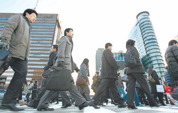 2日, 新年第一天上班的人们正穿梭于首尔世宗路十字路口。因为对新年抱有希望,上班族的脚步显得十分轻松。