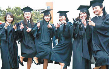 韩国正面临最为严峻的就业形式,但是毕业典礼却给毕业生带来了新的希望。29日,釜山影岛区韩国海洋队的毕业生戴上了学士帽。他们以极富个性的造型拍摄了毕业照片。