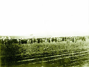 图为1919年3月13日,延边地区约3万名朝鲜人手举太极旗,高喊“大韩独立万岁”。这些人向日本总领事馆行进游行后遭到枪击,17人死亡。该运动是间岛地区独立运动的火把。之后的2个月内举行了47次大小不一的万岁运动。