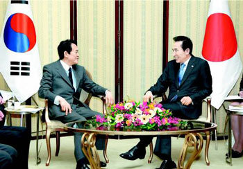 为出席20国(G20)集团金融峰会访问伦敦的李明博总统(右侧),31日(当地时间)在伦敦亮马酒店与日本首相麻生太郎举行了首脑会谈。两国首脑对朝鲜问题和金融危机相应对策进行了探讨。
