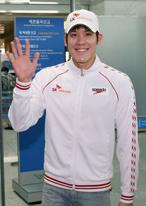 “飞鱼”朴泰桓(20岁•檀国大学)将在美国洛杉矶南加州大学(USC)进行为期6周的实地训练。16日,朴泰桓正在仁川机场向采访团挥手。朴泰桓曾于今年1月赴美国进行实地训练,此次是他第二次到美国进行训练。7月,他将参加意大利罗马举行的世界选手大赛。为找到比赛的感觉,朴泰桓将参加美国地区的比赛。