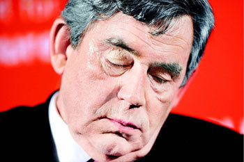 在欧洲议会选举中,记录世上最差支持率的英国执政党—劳动党的领袖布朗首相,7日下午在伦敦东部召开的劳动党会议上紧密双目,忧心忡忡。党内反对派议员们正在对布朗首相施压,要求布朗首相对选举惨败负责并辞职。