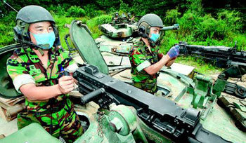 26日,在京畿杨州市,陆军第26师团官兵为了预防猪流感,正戴着口罩接受训练。
