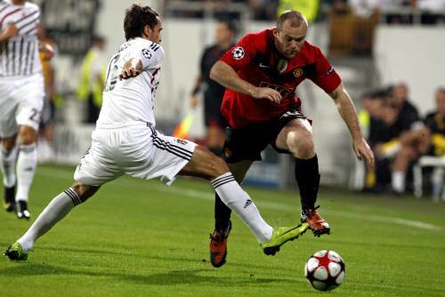 本月16日,欧洲冠军联赛B组一场焦点之战,在土耳其伊斯坦布尔伊诺努球场展开争夺。曼联球星鲁尼,正在试图突破贝西克塔斯队托马斯•斯维克的防守。最终,曼联以1比0获胜。韩国球星朴智星,于下半场第38分钟替补出场。