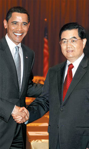 为出席联合国总会访问美国的中国国家主席胡锦涛,22日在纽约同美国总统奥巴马举行会晤,就中美关系和共同关心的国际和地区问题交换意见。这是今年以来胡锦涛同奥巴马举行的第二次会晤。虽然近期两国出现贸易冲突,但两国首脑却认真地商谈了北核问题及经济危机克服方案。
