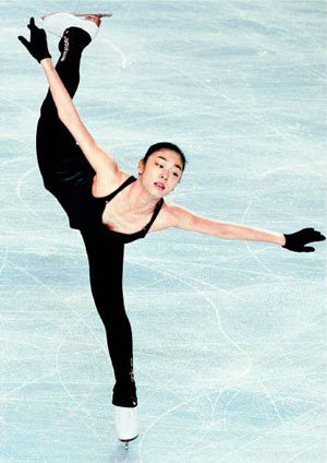 16日,法国巴黎“Palais Omnisports de Paris-Bercy”冰场上,“冰上女王”金妍儿(19岁•高丽大学)于2009~2010赛季国际滑冰联盟(ISU) 花样滑冰大奖赛首站——法国站比赛前夕,进行了首次公开训练。训练结束后,一名日本记者找到我国记者团,并表示:“我确信金妍儿将是本届大赛的冠军。预祝摘得明年温哥华冬奥委会的金牌。”