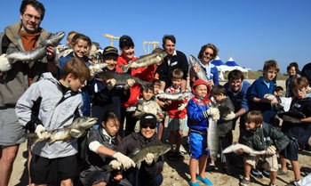18日,于江原襄阳郡南大川举行的鲢鱼庆典中,参予“空手捕捉鲢鱼体验”的外国人们双手抓着鲢鱼,沉浸在别样的快乐体验当中。